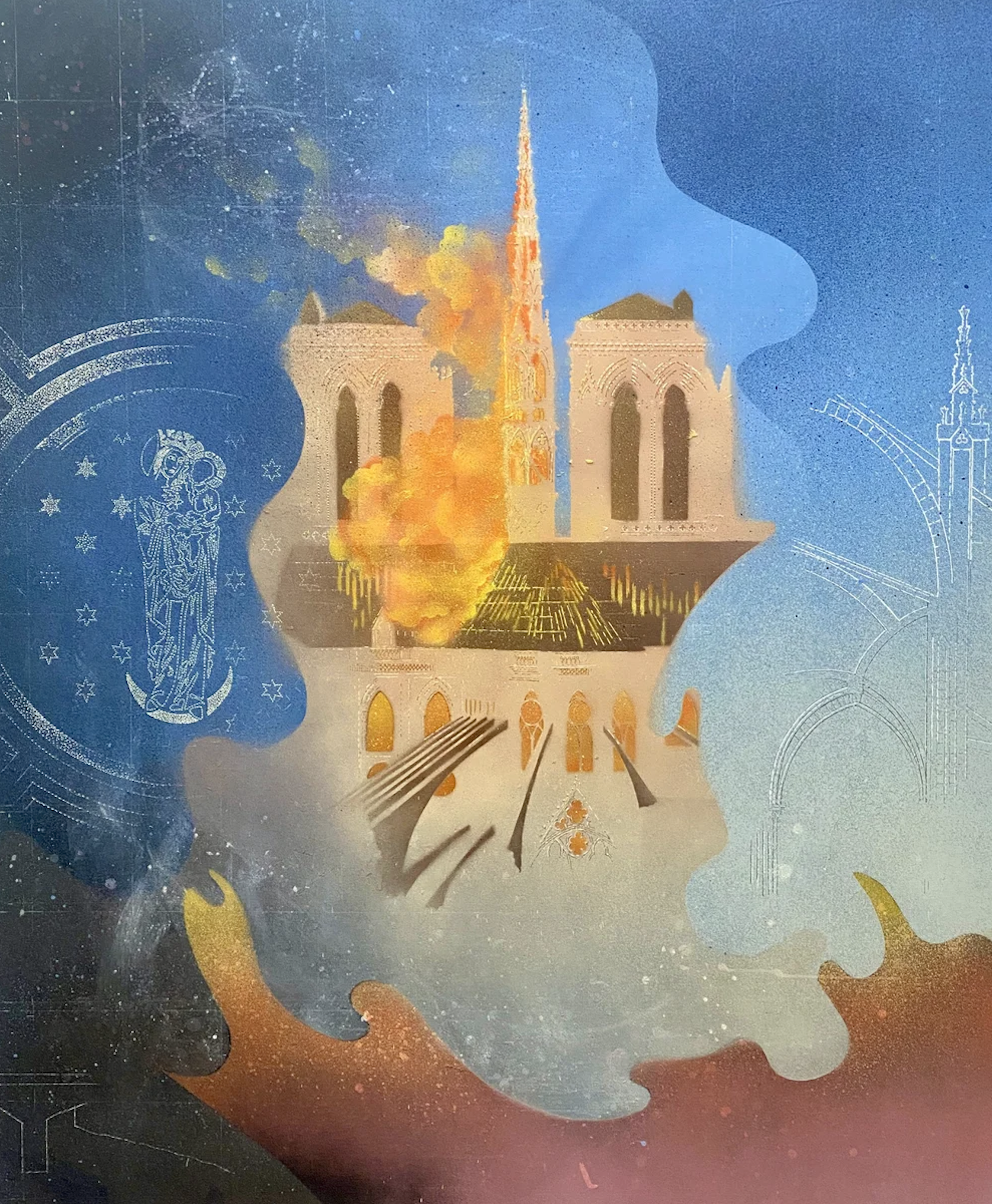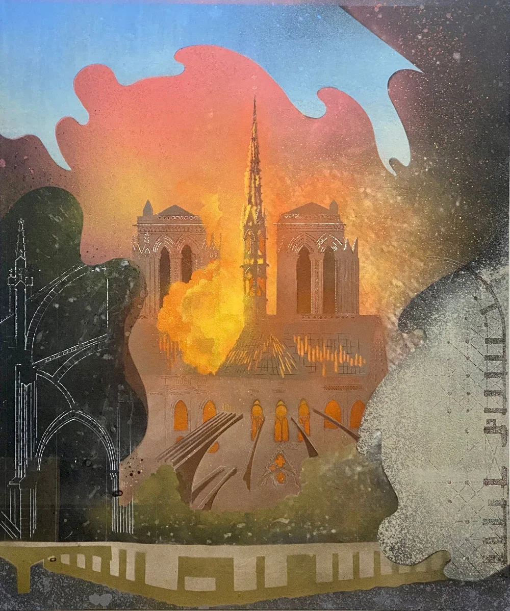 Three years ago, the images of N.D. on fire went viral. For many, the drama unfolding in front of us was deeply moving. Watching the event from California, I could feel that an inner part of myself was touched. I decided to dedicate a series of paintings to the event. In a sense they are historical paintings, directly related to the day. They also represent a very painterly subject, as churches and cathedrals have been embraced by many artists over the centuries.
