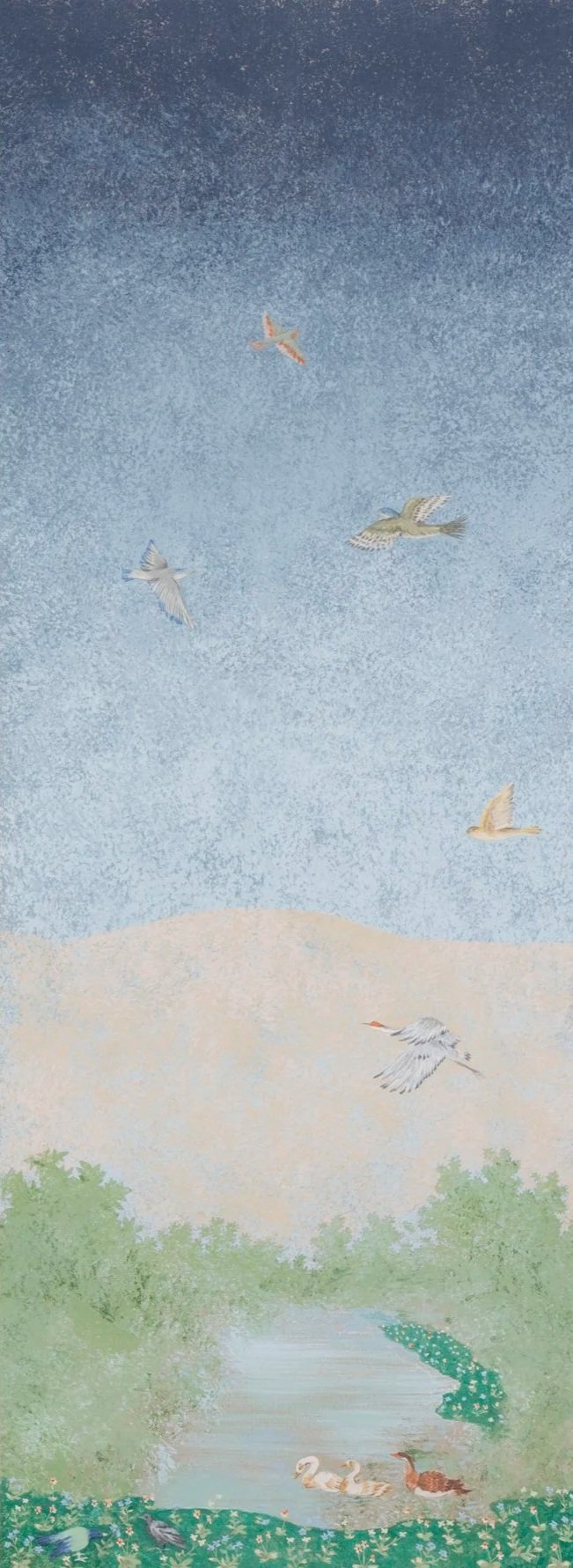 The paintings were originally designed as wallpapers, and are available for order in antique or natural finish. Please contact us directly for more information.